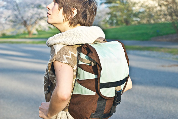 So I currently have a messenger bag.  It’s a Timbuktu  black, hemp, waterproof, has cool handmade patch bought from a gutter punk in OlyWA on it.  When I show up to my local scenester coffee shop- BetterDay- in Santa Fe, I totally fit in.  But today I decided that I hate it.  Though I might look cool cruising around with this bag, it is far from practical.  If I put anything more than a few pieces of paper, I am constantly fighting with it.  It doesn’t matter how snug I put it to my back.  It will some how manage to swing either under my arm pit or practically to the front.  I found that annoying before….but now that I am pregnant…it is actually bordering dangerous.  Baby bump, bike, bag…all struggling with each other…no bueno.  I really want to get a backpack.  So I’m adding that to my wishlist of “needed” items.  Here are a couple I’ve had my eye on.